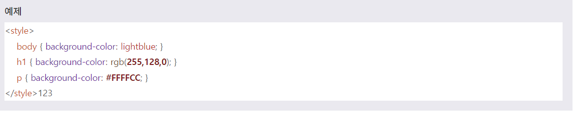 - 다음 예제는 style 속성을 이용하여 배경색을 변경하는 예제입니다.