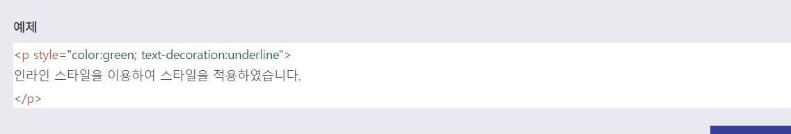 - 인라인 스타일이란 HTML 요소 내부에 style 속성을 사용하여 CSS 스타일을 적용하는 방법입니다.