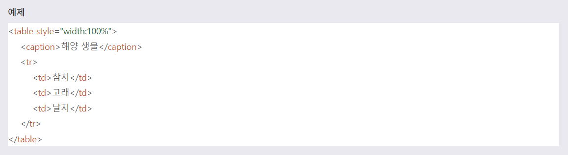 - caption태그를 사용하면 테이블 상단에 제목이나 짧은 설명을 붙일 수 있습니다.