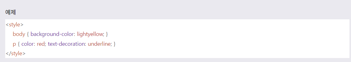 이러한 내부 스타일 시트는 해당 HTML 문서에만 스타일을 적용할 수 있습니다.