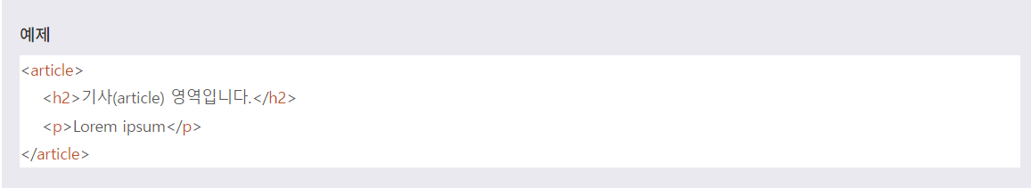 - article 요소는 HTML 문서에서 독립적인 하나의 기사(article) 부분을 정의합니다.