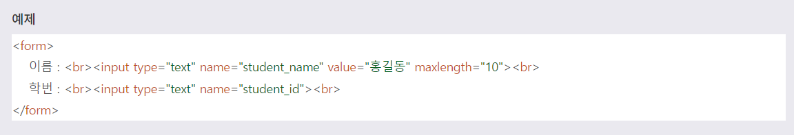 - maxlength 속성은 입력 필드에 입력할 수 있는 문자의 최대 길이(length)를 설정합니다.