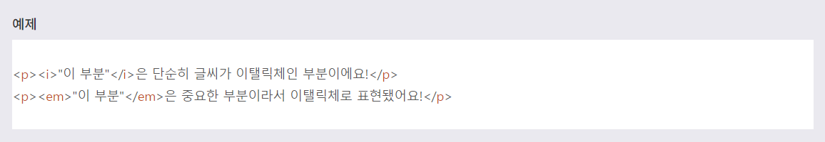 - 이탤릭체를 표현하고 싶을 때에는 i태그, em태그 를 사용합니다.