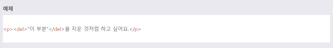 - del태그를 사용하면 가로줄로 지운것처럼 표현할 수 있다.