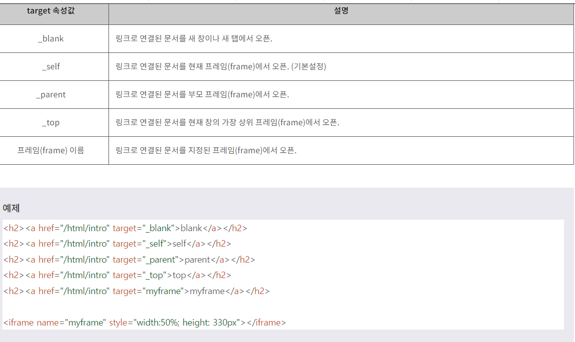 - a태그의 target 속성은 링크로 연결된 문서를 어디에서 열지를 명시합니다.