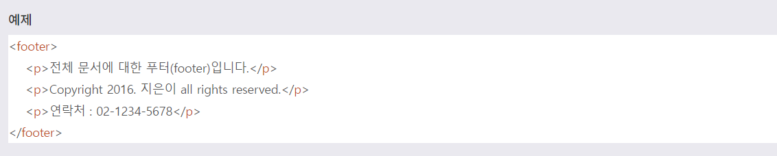 footer 요소는 HTML 문서나 섹션(section) 부분에 대한 푸터(footer)을 정의합니다.