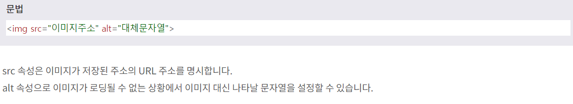 - HTML 문서에 이미지를 삽입할 때는 img태그를 사용합니다