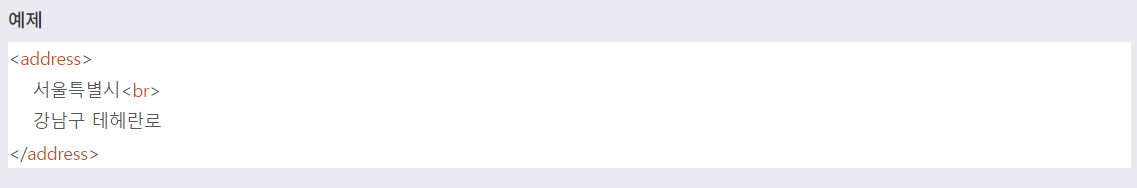 address태그를 사용하면 이탤릭체로 표현되며, 위아래로 약간의 공백이 자동으로 삽입됩니다