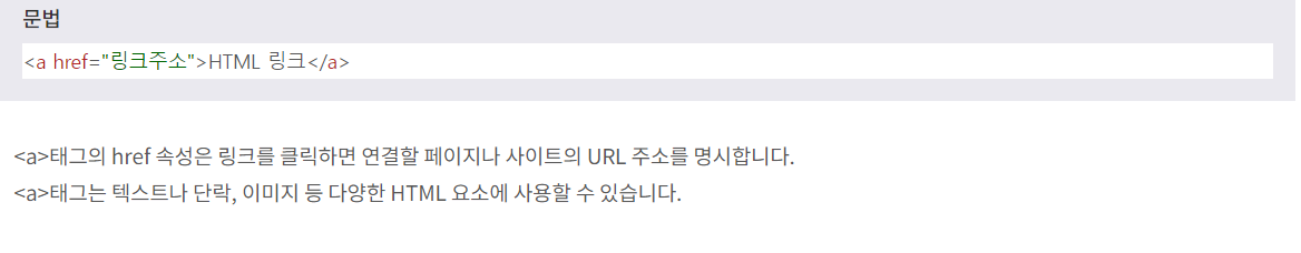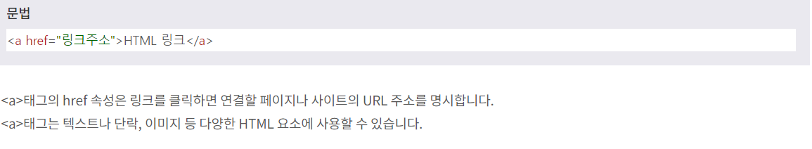 - 하이퍼 링크를 간단히 링크(link)라고도 부르며, HTML에서는 a태그로 표현합니다.