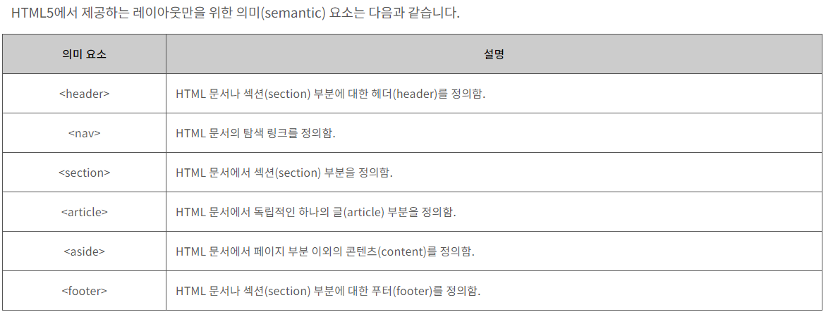 이러한 요소들을 의미(semantic) 요소라고 합니다.