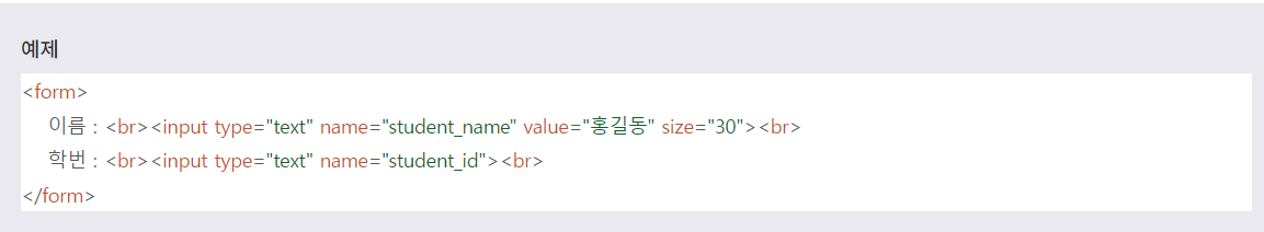 - 따라서 입력될 수 있는 문자의 최대 길이는 maxlength 속성값에 따라 달라지며, size 속성과는 전혀 무관합니다.