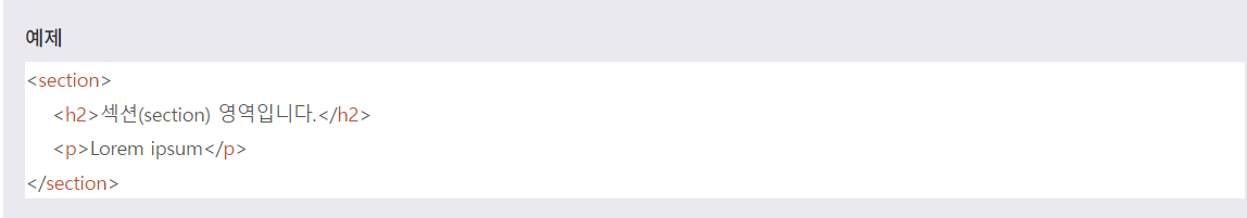 - ection 요소는 HTML 문서에서 섹션(section) 부분을 정의합니다.