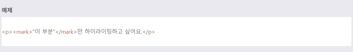 - 텍스트에 하이라이팅 효과를 적용시키는 mark태그를 사용한다.