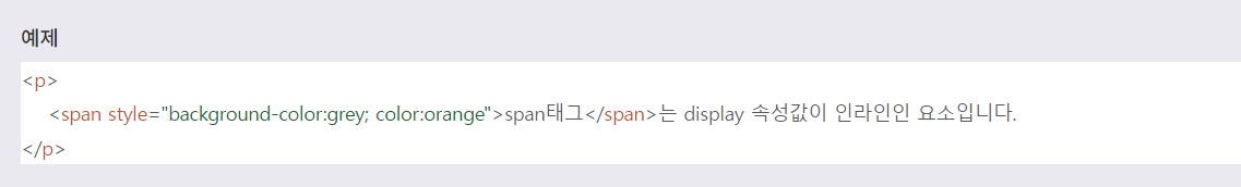 - display 속성값이 인라인(inline)인 요소는 새로운 라인(line)에서 시작하지 않습니다.