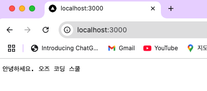 res.end("안녕하세요, 오즈 코딩 스쿨!"); // 응답 전송