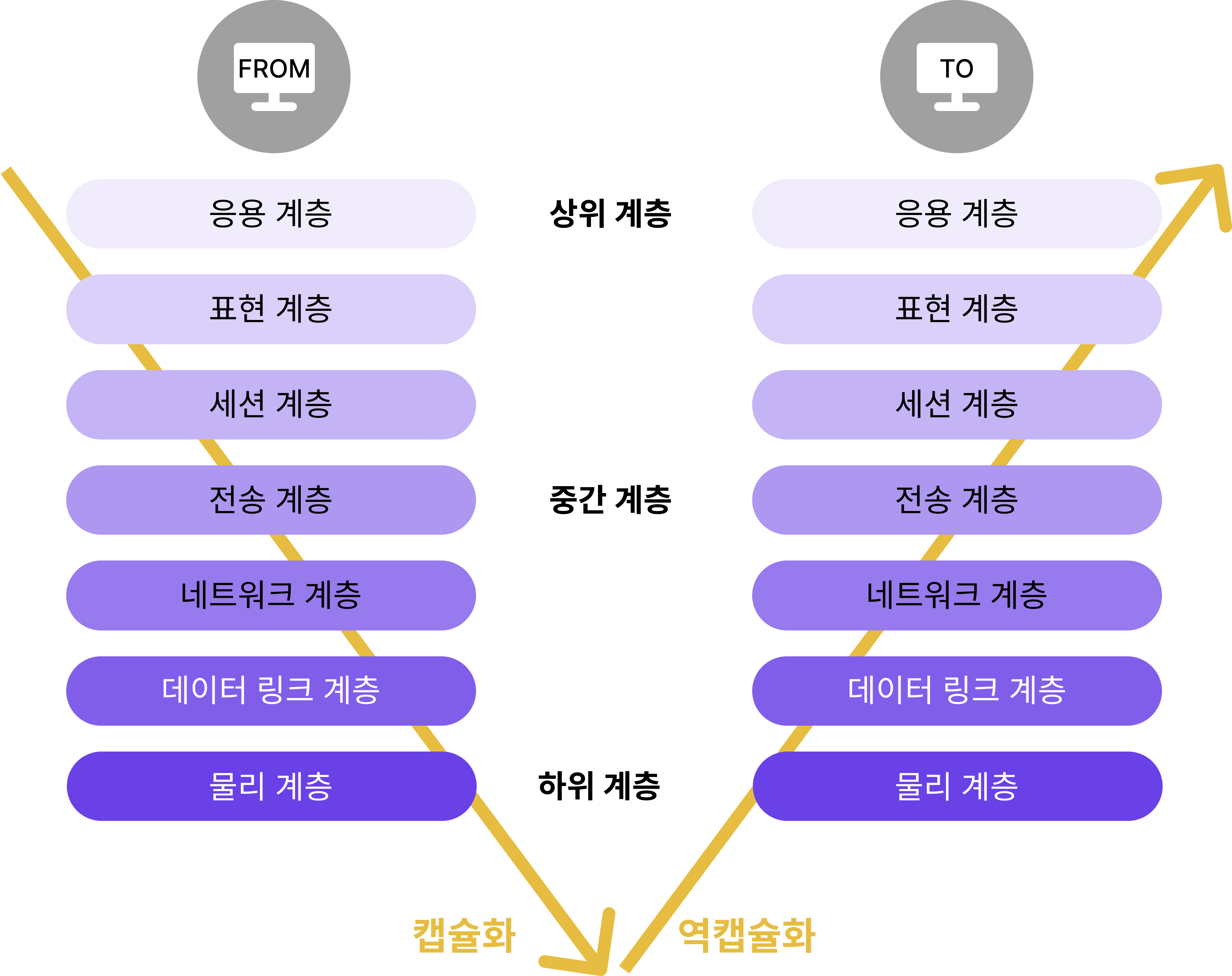 - 역캡슐화 : 최종 목적지에 도달하면 원본 데이터로 포장이 뜯어짐