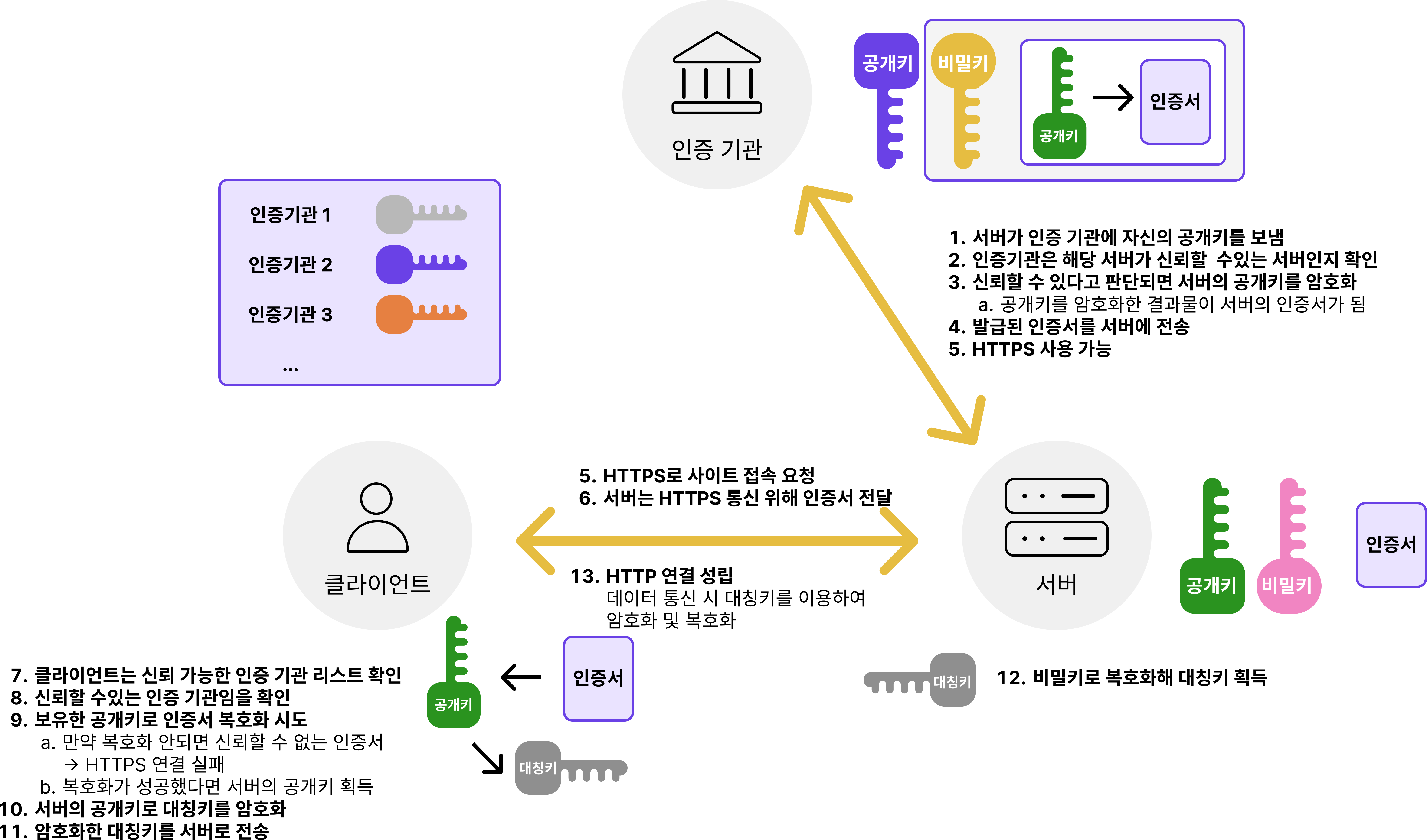 - 서버 : HTTPS 프로토콜로 사이트를 제공