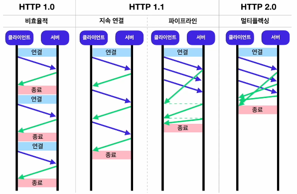 - 연결을 한 번 한 이후에 연결과 응답을 반복, 모든 요청이 끝난 후 종료