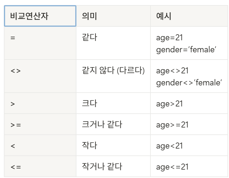 SQL where 조건절