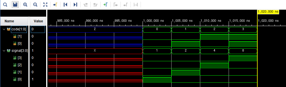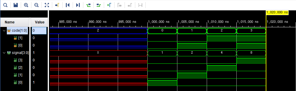if(code == 2'b00) signal = 4'b0001; //2비트를 4가지 경우의 수로 변환