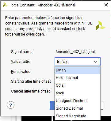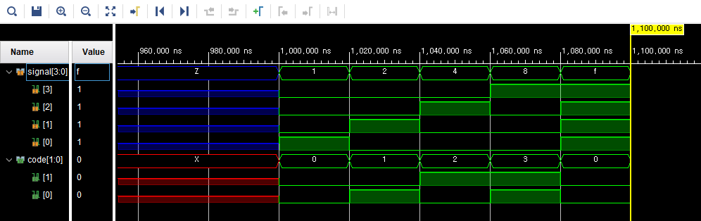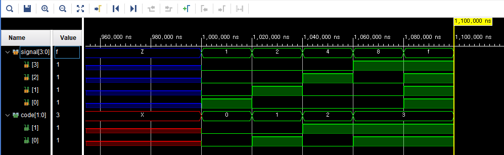 default값을 설정한뒤 1111입력한 모습-2'b00으로 출력 나옴