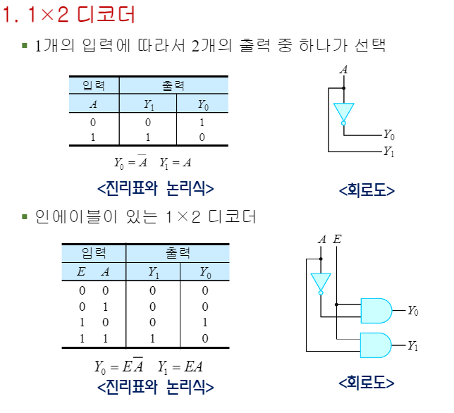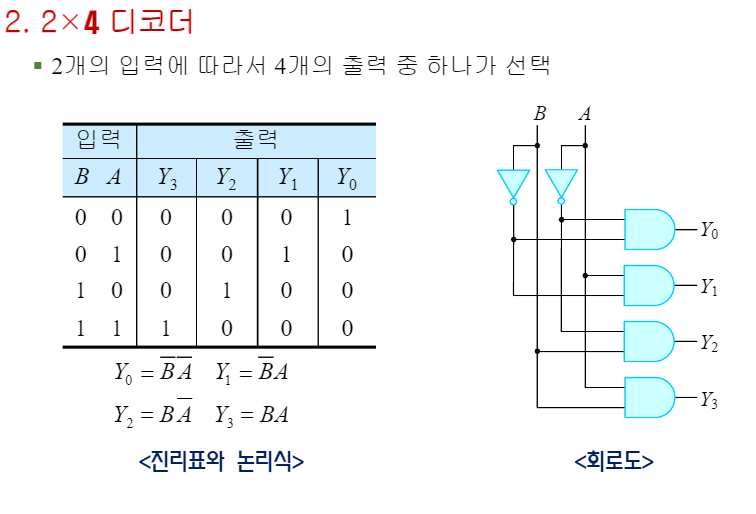 역할 : 입력된 이진 코드를 받아 이를 여러 개의 출력 신호로 변환.