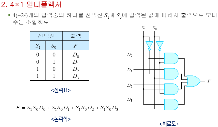 m개의 선택 신호로 2^m개의 입력 중 하나를 선택.