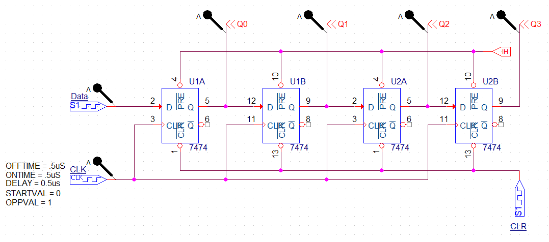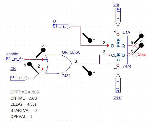 pre와 clr(clear)는 not이 붙어있어 active low로 동작에 주의