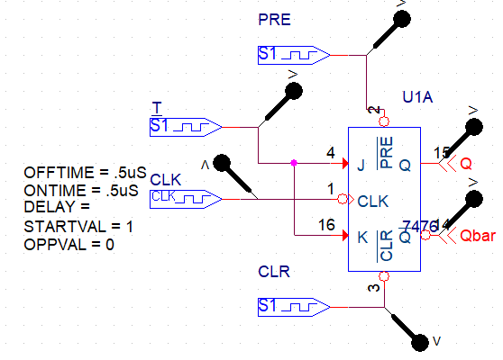 T 플립플롭도 PRE와 CLR 단자를 가지고 있다.