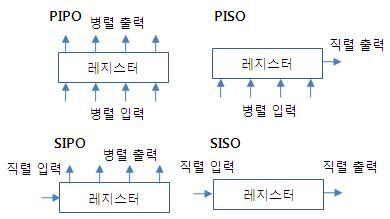 연산이나 데이터 전송 및 변환을 위하여 데이터를 오른쪽이나 왼쪽으로 쉬프트(Shift)->쉬프트 레지스터