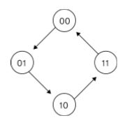 4진 동기 업 카운터는 0~3을 계수하며 4개의 출력 상태(00, 01, 10, 11)를 나타낸다