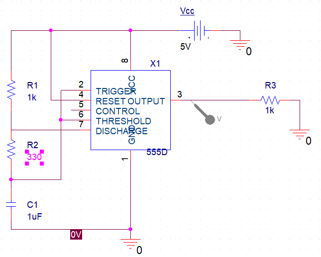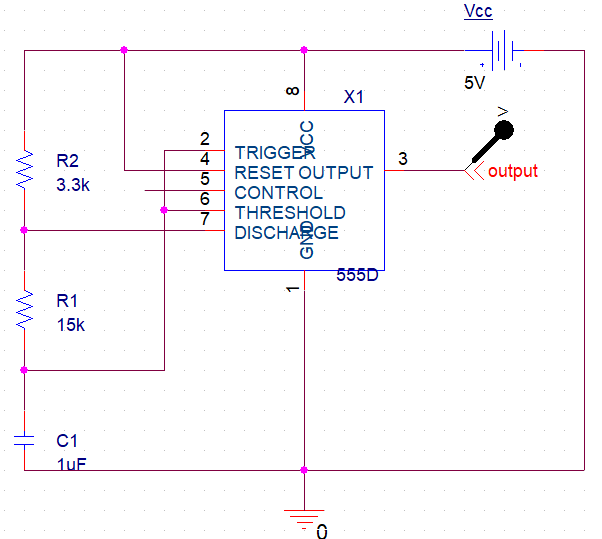 외부에 연결된 저항과 커패시터 값을 조절하여 출력 펄스의 주파수와 폭 조절
