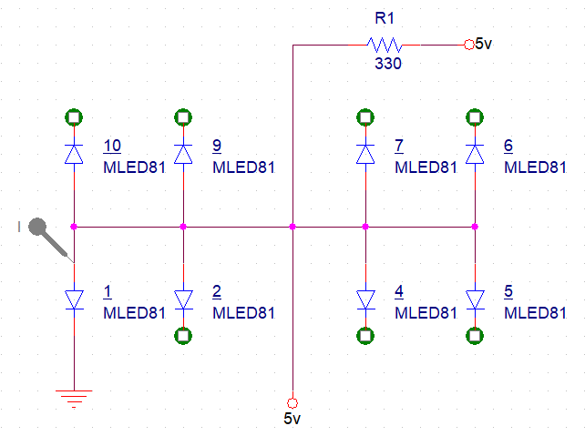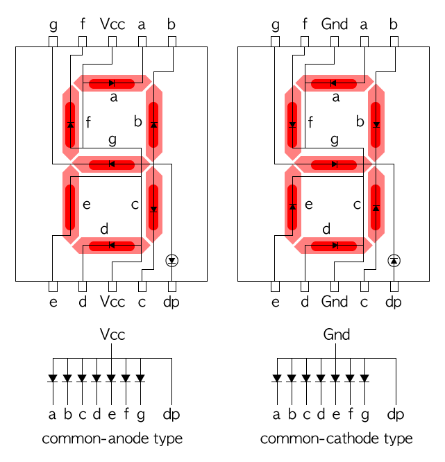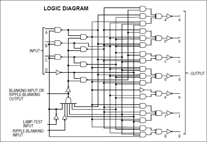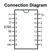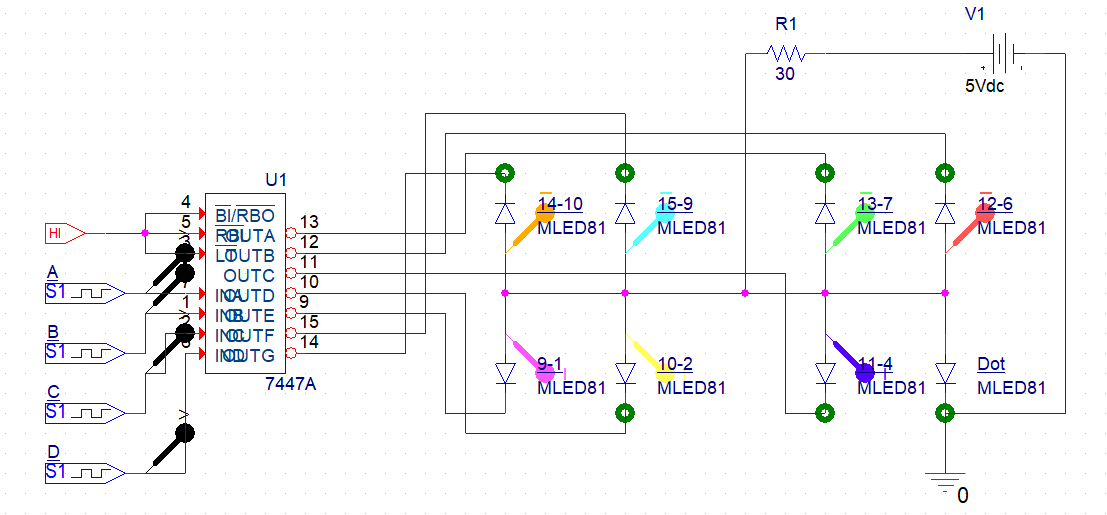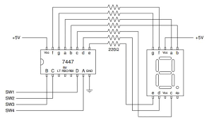 7447디코더 입력(DCBA)에 BCD코드 입력, 7447디코더 출력에 다이오드 연결