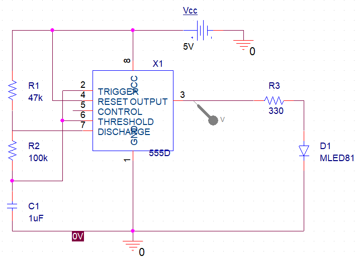 타이머 IC로 구성한 비안정 멀티바이브레이터의 출력단자에 LED 연결