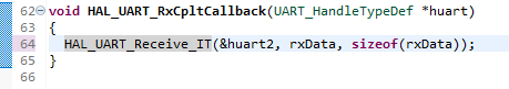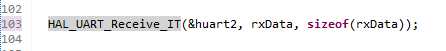 stm32에서 uart인터럽트는 한 번 사용되면 disable되기 때문에 콜백함수 안에서 인터럽트 함수를 다시 사용해줘야 한다