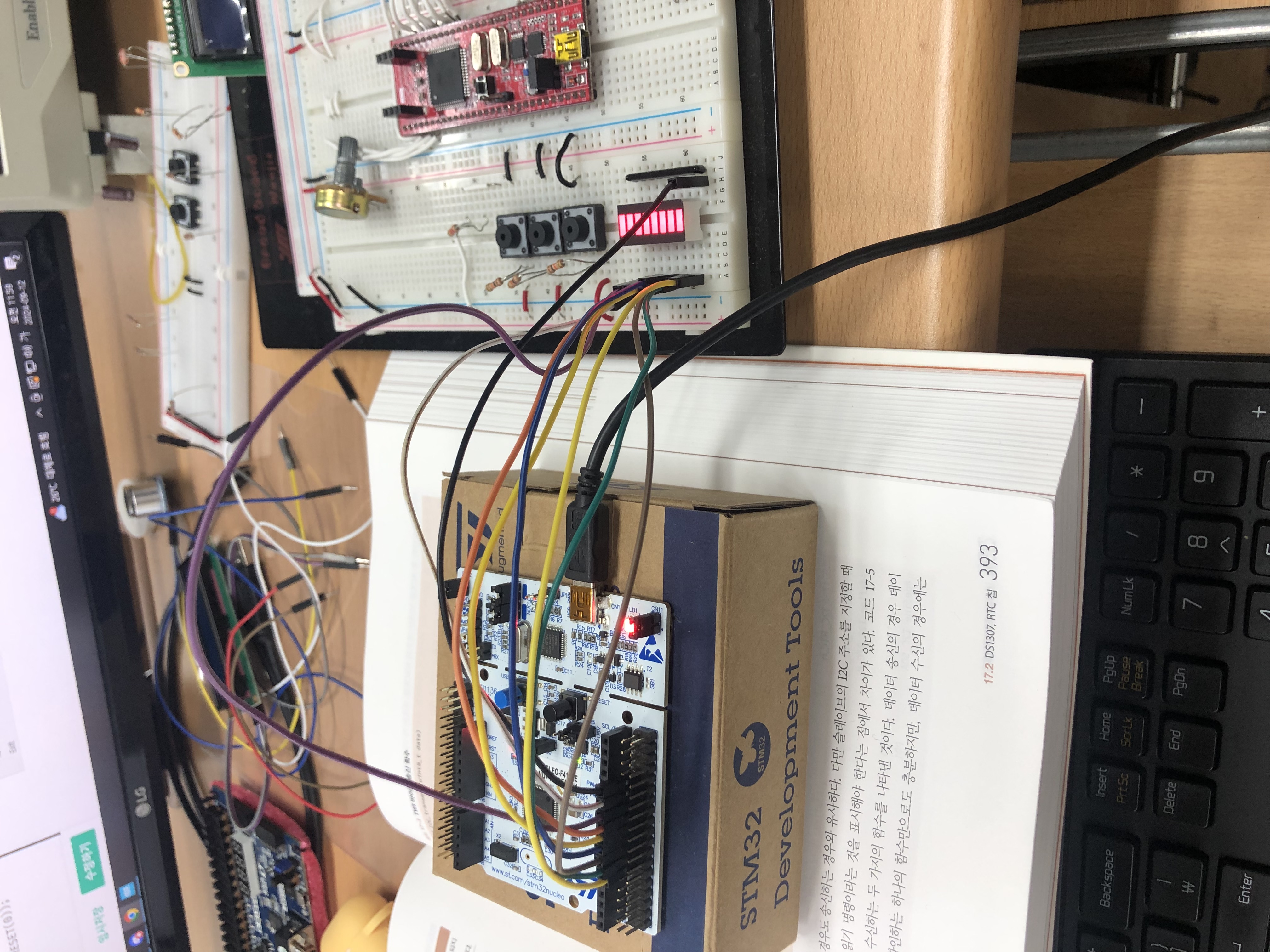 hal 함수를 이용하여 gpio 제어, 사용한 gpio는 GPIOA, GPIOB, GPBIOC이고 A에서 5, 6, 7, 8, 9이고 B에서는 6, 10 C에서는 7번 필들을 사용하였다.