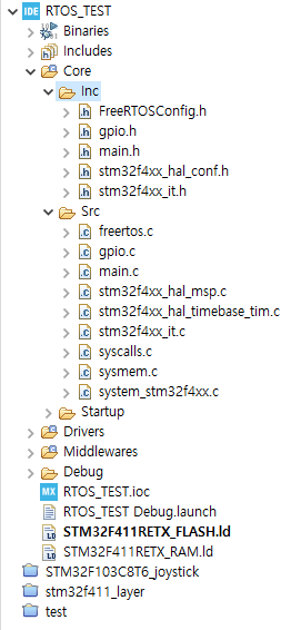 FreeRTOS헤더와 소스파일 Middlewares폴더가 생김
