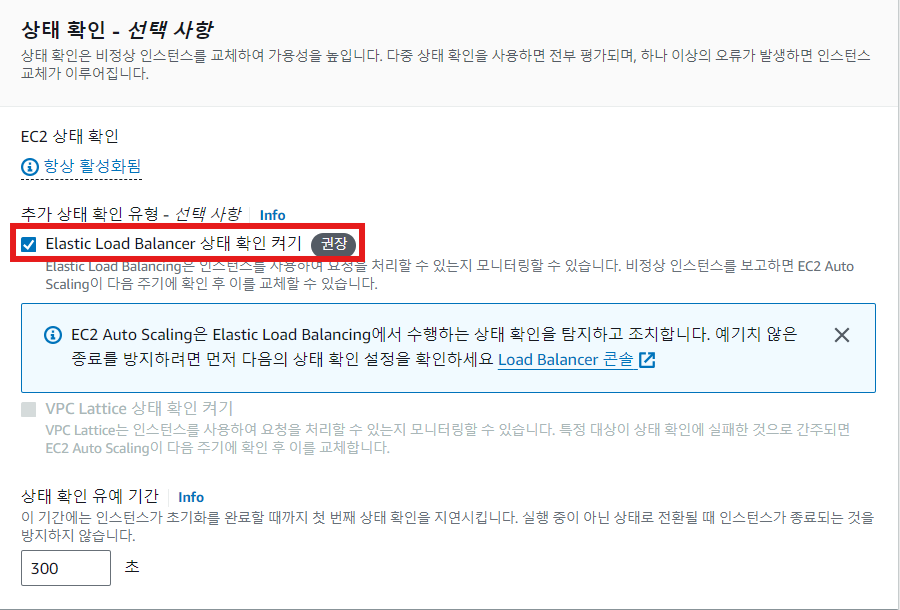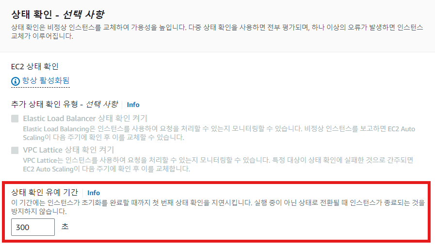 - 상태 확인에 실패했을 때 Unhealthy 상태로 변경 -> AutoScale에서 직접 해당 인스턴스를 교체