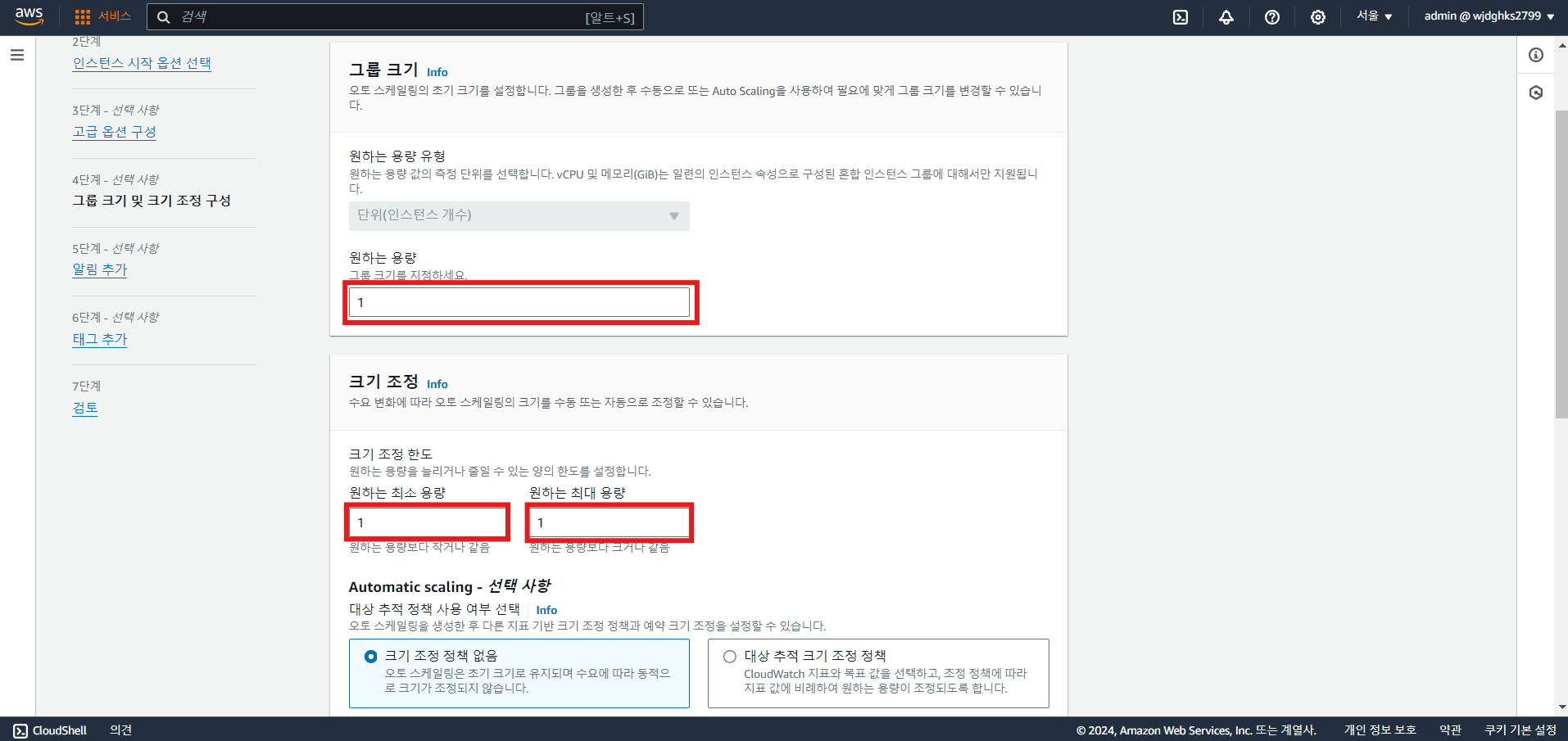 - 최대 / 최소 / 원하는 인스턴스 숫자
