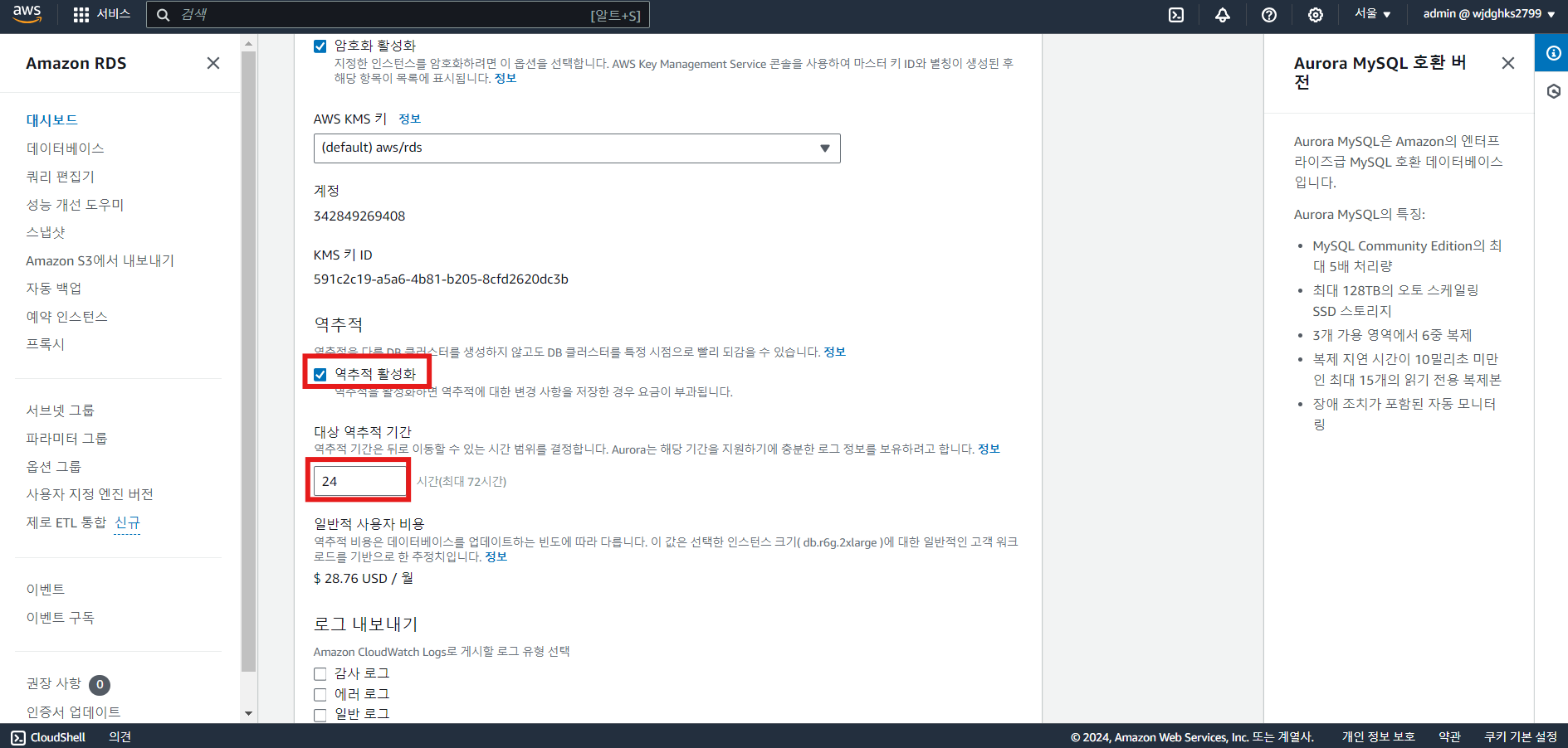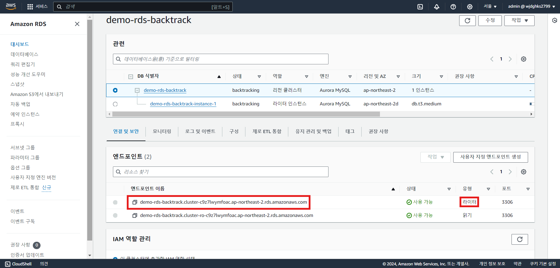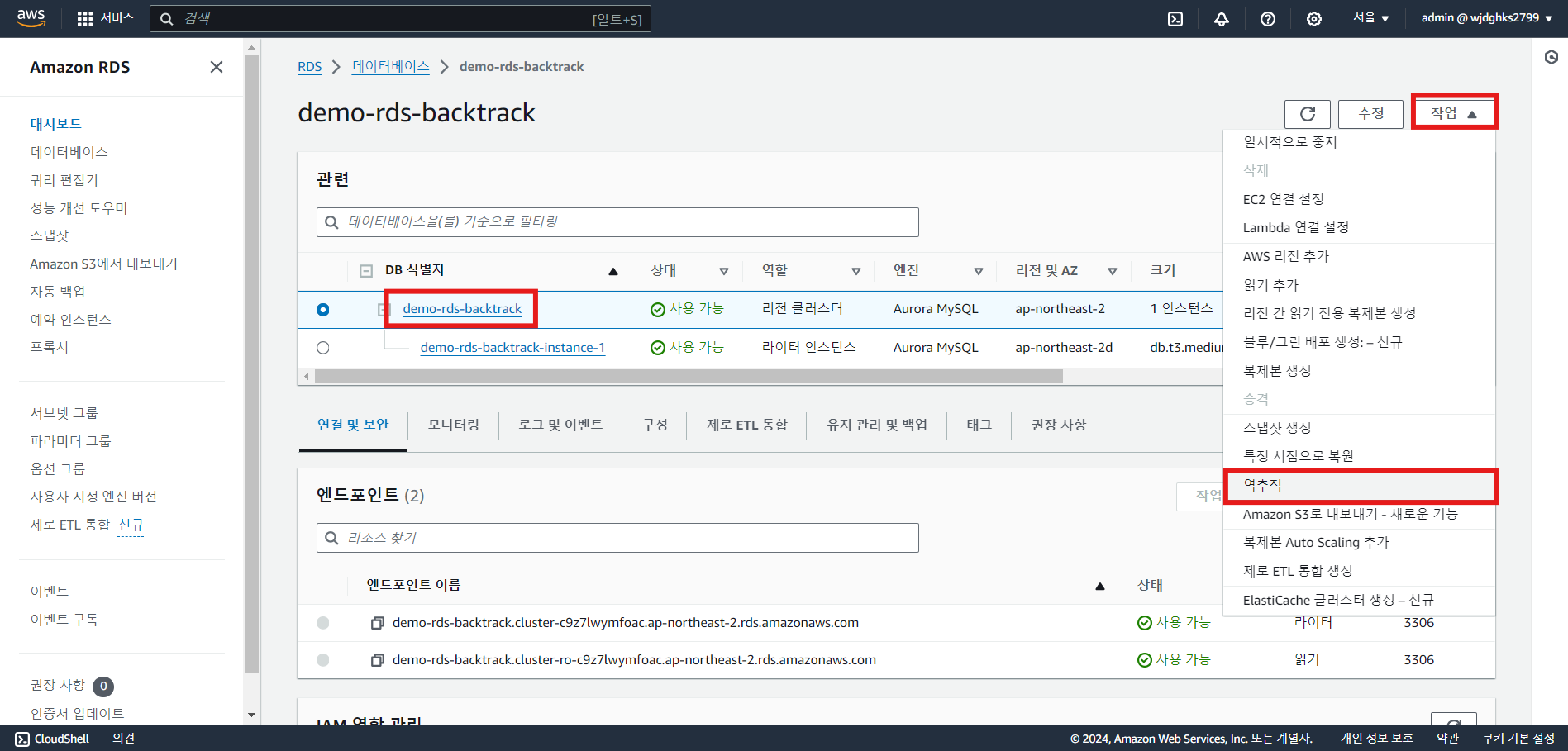 실습 - Aurora Backtrack