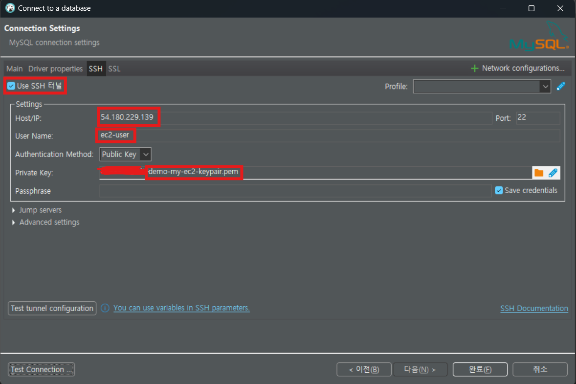 b. DB 툴에서 SSH 연결 설정