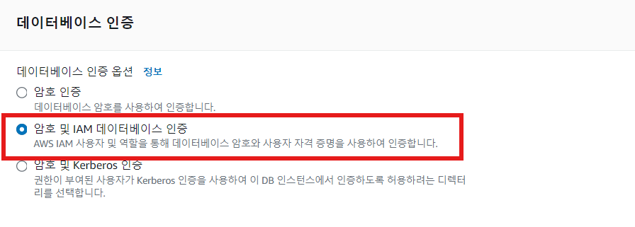 e. 암호 및 IAM 데이터베이스 인증 선택