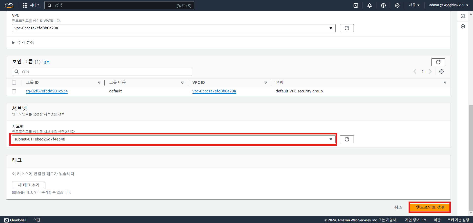 a. 서브넷 그룹 생성