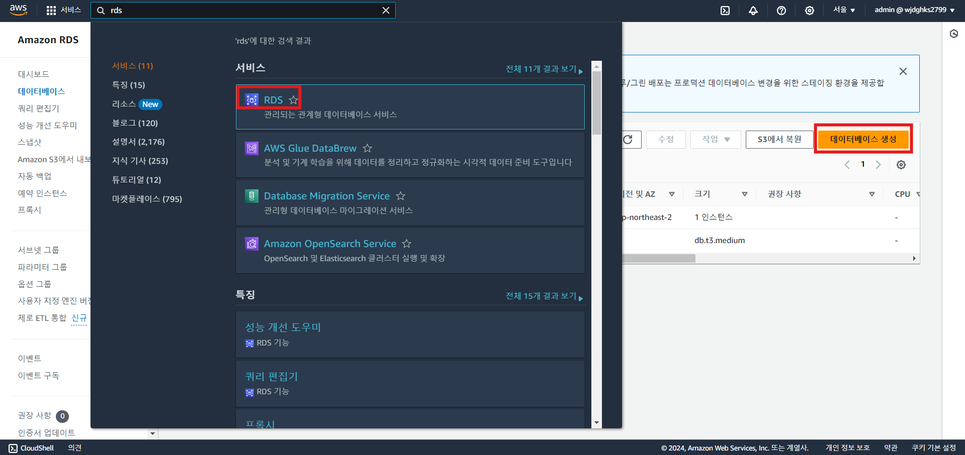 - RDS 데이터베이스 생성