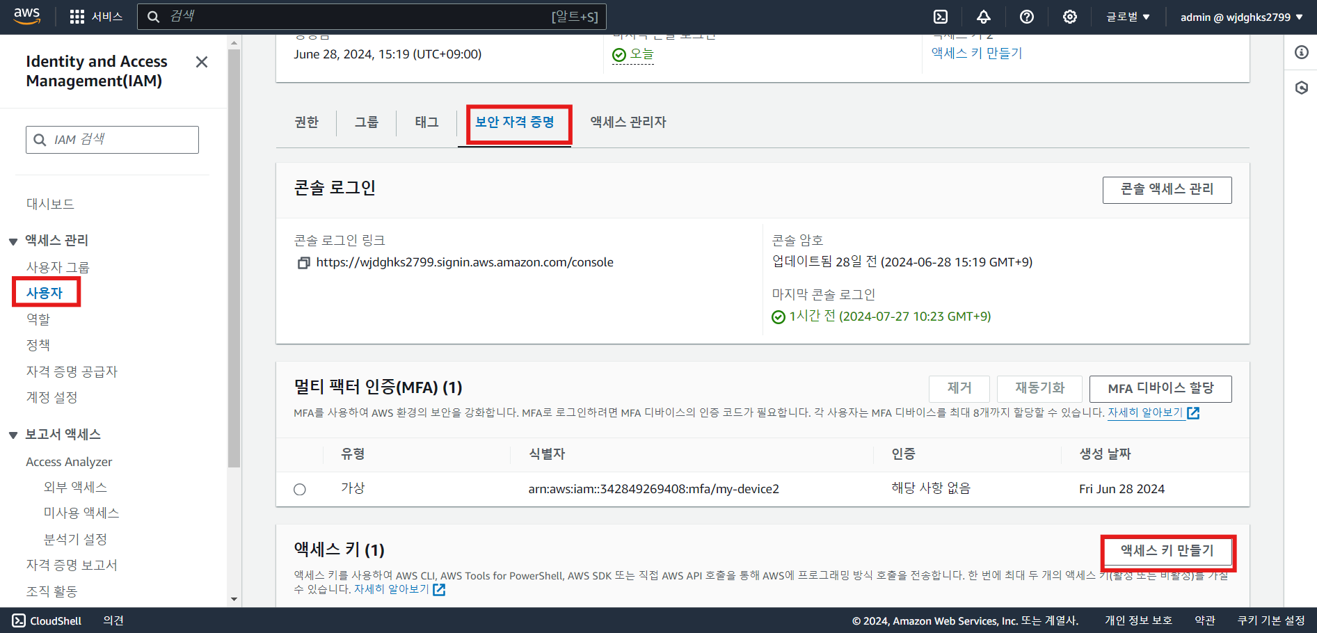 a. 사용자 액세스 키 생성 및 프로필 생성