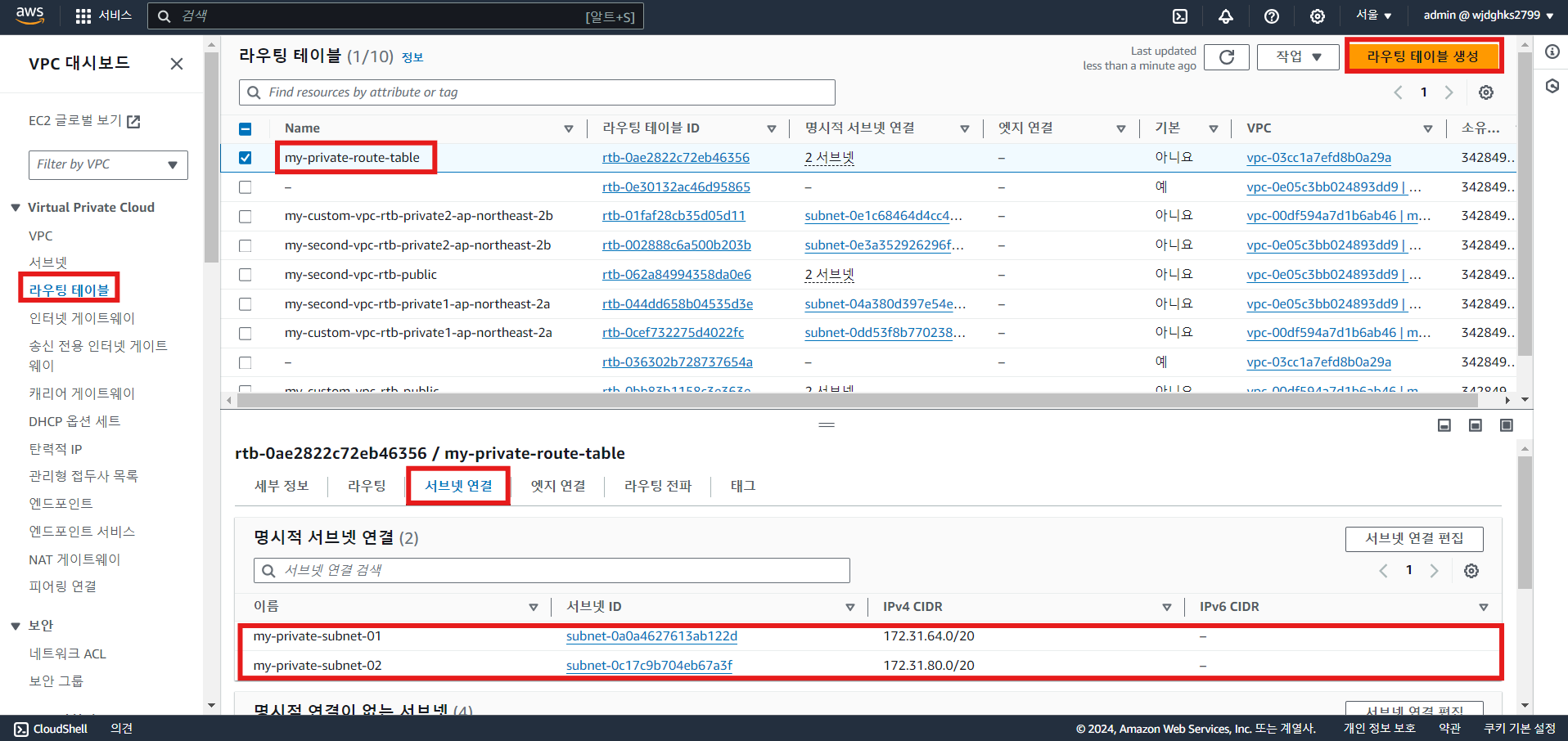 a. 라우트 테이블 생성 및 서브넷 연결