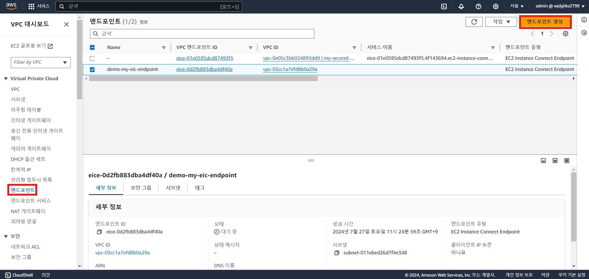 EC2 Instance Connect Endpoint 생성