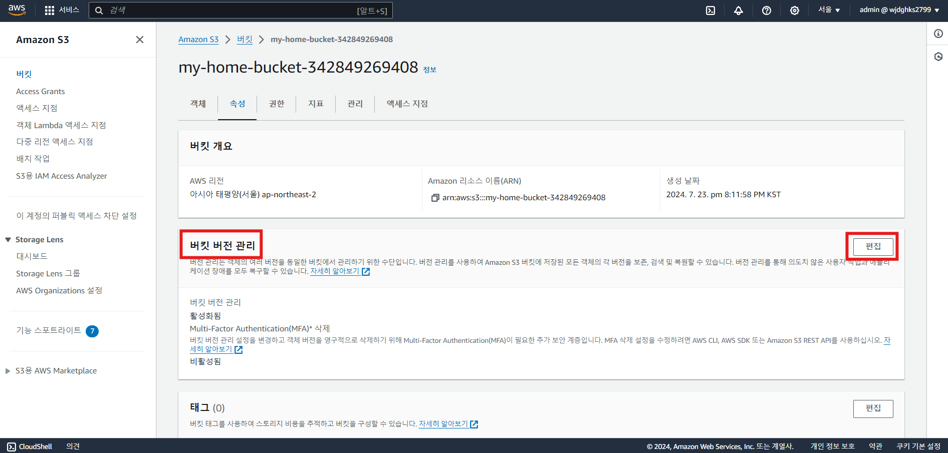 - Transfer Acceleration: CloudFront를 통해 다운로드를 최적화시키는 서비스