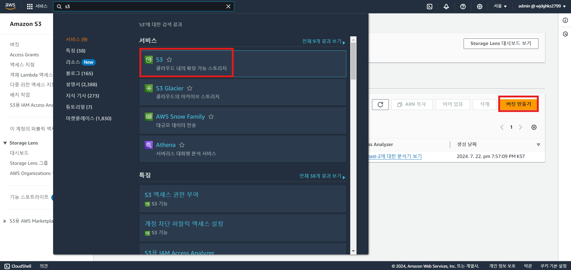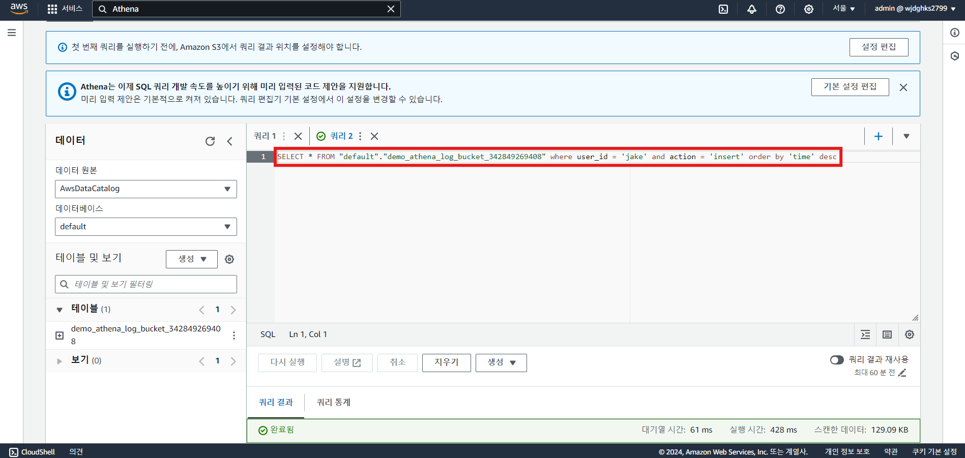 ※ S3 로그 버킷과 다른 S3 쿼리 result 버킷