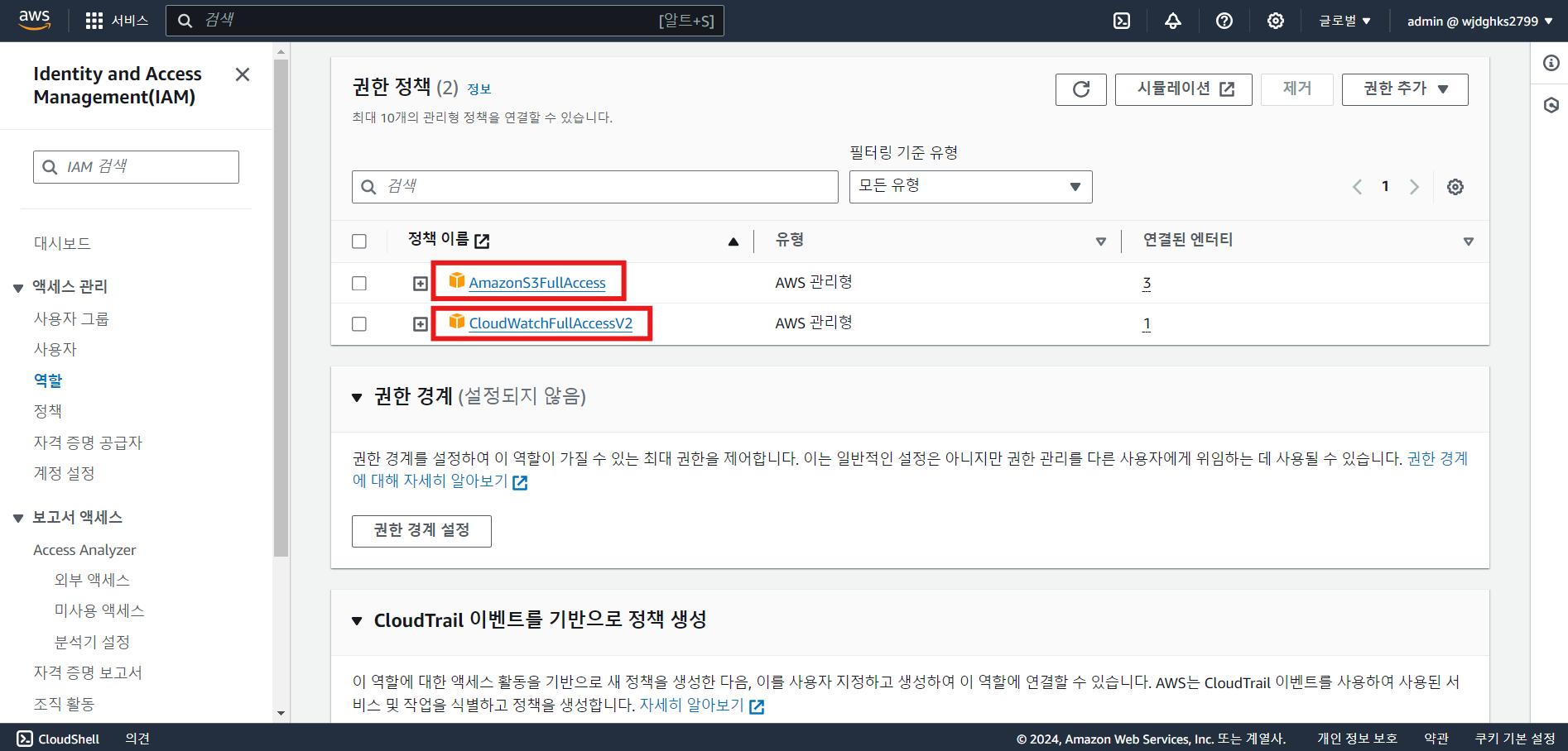 - Amazon S3의 버킷을 정해 활동 로그를 다른 S3 버킷에 저장하는 기능